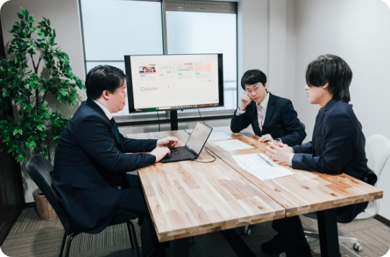 - ご契約いただいた事業者様との打ち合わせです。まずは、事業者様に沢山お話いただき、事業に対する想いを引き出すことを大切にしています。そして、現実的な側面で実現可能かどうかという視点を持って、情熱と冷静の間でヒアリングするようにしています。事業計画書が作成できたら、計画書の内容と実際に事業者様の思い描くビジョンが一致しているか確認します。方向性が固まったら、よりエッジの効いた事業計画書にすべく、その事業展開によってどのような社会的影響を及ぼせるか、地域貢献性はあるかといった、事業者様お一人では中々思い浮かびにくい要素を共に探っていきます。