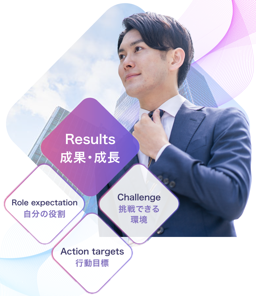 入社間もない社員には、研修や重要業務のチェックリストを活用したOJTを行い、一通りのスキルを習得した後は挑戦的なプロジェクトへの参加を通じた人材開発を推奨しています。こうしたチャレンジに対しては、成果だけでなく、取り組み姿勢(バリューへの体現)や期待される役割への貢献、自ら設定した行動目標の達成度といった視点から、公正な人事評価の仕組みを作っていきます。その上で、納得感のあるフィードバックや報酬に反映させることで、社員の挑戦を後押しします。挑戦のプロセスと結果を正当に認める評価制度があるからこそ、社員は安心して挑戦を続けることができ、挑戦と成長の好循環が会社全体に広がっていくのです。