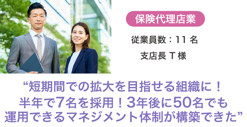 これまでは2つの支店で支店長を務め、自分1人で売上をつくることに必死で、組織化に向けた視点や何が必要なのかが見えていませんでした。そんな中で「組織づくり伴走支援」を受け、ゼロから組織づくりに取り組む中で、プレーヤーではなくマネージャーとして、組織の力で成果を上げていく仕組みを学ぶことができました。